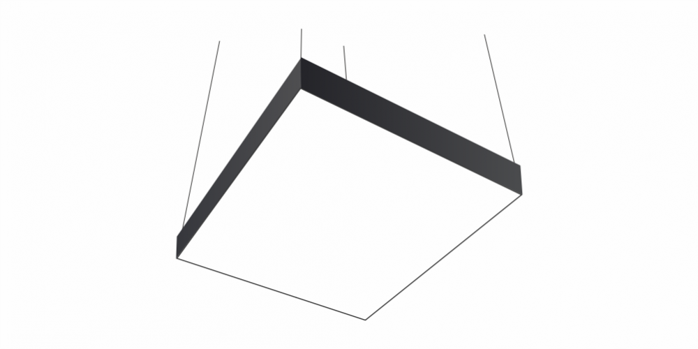 Светодиодный светильник в виде квадрата LiNE-PRO мощностью 3000 Вт и 1500 мм изготовлен из алюминиевого основания, с установленными на него светодиодными модулями. Возможна различная цветовая температура - 3000К, 4000К, 5000К, 6000К. Боковины могут быть изготовлены из плотного ПВХ различного цвета, на выбор или светотехнического акрила и выполнять функцию рассеивателя. Блок питания внутри корпуса светильника. Монтаж на тросовых подвесах или непосредственно к потолку или стене.