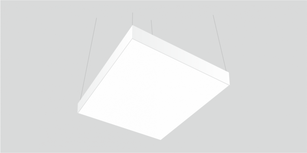 Светодиодный светильник в виде квадрата LiNE-PRO мощностью 95 Вт и 700 мм изготовлен из алюминиевого основания, с установленными на него светодиодными модулями. Возможна различная цветовая температура - 3000К, 4000К, 5000К, 6000К. Боковины могут быть изготовлены из плотного ПВХ различного цвета, на выбор или светотехнического акрила и выполнять функцию рассеивателя. Блок питания внутри корпуса светильника. Монтаж на тросовых подвесах или непосредственно к потолку или стене.