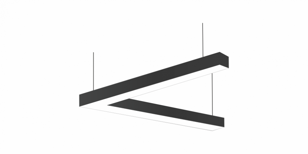 Светодиодный Угловой светильник LiNE-Pro 45гр. 750х750mm 60W 5000K черный предназначен для накладного или подвесного монтажа на тросовые подвесы. Изготовлен из сплошного сварного алюминиевого профиля в виде угла под 45 градусов. Высота установки светильника регулируется подвесом с цанговым тросовым зажимом и может варьироваться от 0,05 метра до 4 метров от основного потолка. Светильник имеет равномерную засветку по всей площади рассеивателя. Источник питания находится внутри корпуса. Торцевые заглушки входят в комплект. Возможно изготовление светильника с магистральной проводкой для соединения нескольких светильников в сплошную конструкцию.
