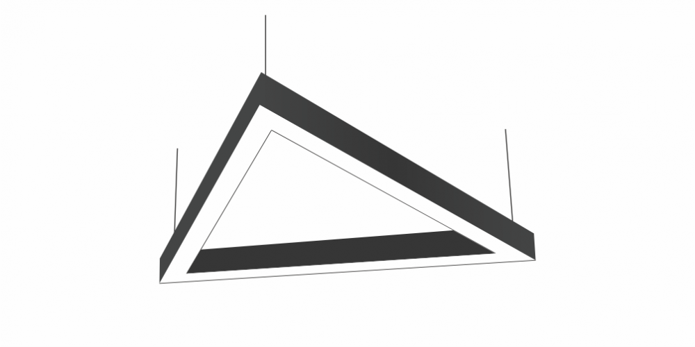 Светодиодный Треугольный светильник LiNE-Pro 3х500mm 60W 6000K черный предназначен для накладного или подвесного монтажа на тросовые подвесы. Изготовлен из сплошного сварного алюминиевого профиля в виде равностороннего треугольника. Высота установки светильника регулируется подвесом с цанговым тросовым зажимом и может варьироваться от 0,05 метра до 4 метров от основного потолка. Треугольный светильник имеет равномерную засветку по всей площади рассеивателя. Источник питания находится внутри корпуса.
