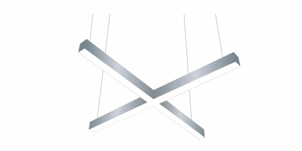 Светодиодный Лучевой светильник LiNE-Pro 4х500mm 80W 4000K серый предназначен для накладного или подвесного монтажа на тросовые подвесы. Изготовлен из сплошного сварного алюминиевого профиля в виде буквы «Х» (крестом). Высота установки светильника регулируется подвесом с цанговым тросовым зажимом и может варьироваться от 0,05 метра до 4 метров от основного потолка. Крестовой светильник имеет равномерную засветку по всей площади рассеивателя. Источник питания находится внутри корпуса. Торцевые заглушки входят в комплект. Возможно изготовление светильника с магистральной проводкой для соединения нескольких светильников в сплошную конструкцию.