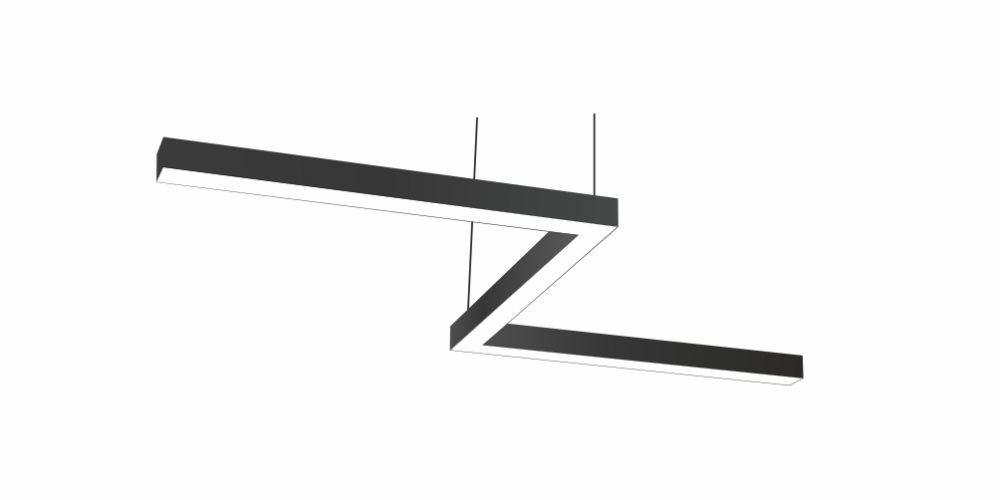 Фигурный светодиодный Светильник Зигзаг LiNE-Pro 3х500mm 60W 5000K черный предназначен для накладного или подвесного монтажа на тросовые подвесы. Изготовлен из сплошного сварного алюминиевого профиля в виде зигзага. Высота установки светильника регулируется подвесом с цанговым тросовым зажимом и может варьироваться от 0,05 метра до 4 метров от основного потолка. Светильник Зигзаг имеет равномерную засветку по всей площади рассеивателя. Источник питания находится внутри корпуса. Торцевые заглушки входят в комплект. Возможно изготовление светильника с магистральной проводкой для соединения нескольких светильников в сплошную конструкцию