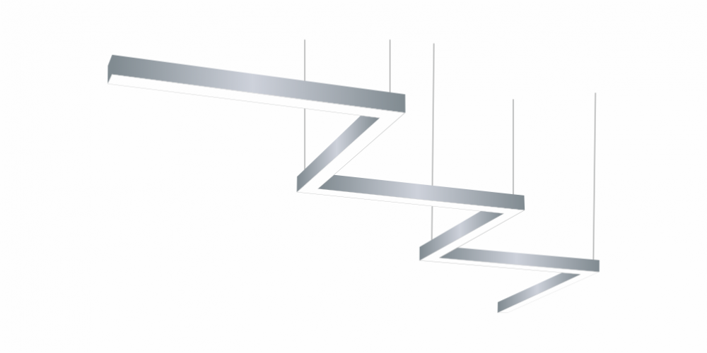 Фигурный светодиодный Светильник Зигзаг LiNE-Pro 6х500mm 120W 4000K серый предназначен для накладного или подвесного монтажа на тросовые подвесы. Изготовлен из сплошного сварного алюминиевого профиля в виде зигзага. Высота установки светильника регулируется подвесом с цанговым тросовым зажимом и может варьироваться от 0,05 метра до 4 метров от основного потолка. Светильник Зигзаг имеет равномерную засветку по всей площади рассеивателя. Источник питания находится внутри корпуса. Торцевые заглушки входят в комплект. Возможно изготовление светильника с магистральной проводкой для соединения нескольких светильников в сплошную конструкцию
