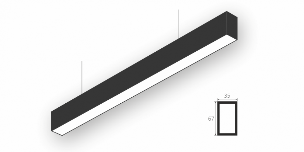 Линейный светодиодный Подвесной светильник LiNE-Pro 67x35 2250mm 68W 4000K Черный предназначен для подвесного монтажа на тросовые подвесы. Изготовлен из алюминиевого профиля длиной 2250 мм, мощностью 68 Вт c цветовой температурой 4000 K, цвет корпуса Черный. Высота установки светильника регулируется подвесом с цанговым тросовым зажимом и может варьироваться от 0,05 метра до 4 метров от основного потолка. Линейный светильник может использоваться для реечных потолков. Светильник имеет равномерную засветку по всей площади рассеивателя. Источник питания находится внутри корпуса. Торцевые заглушки входят в комплект.