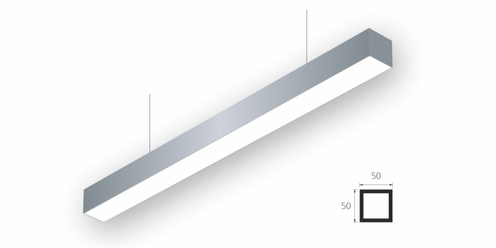 Линейный модульный светодиодный Подвесной светильник LiNE-Pro 50x50 2250mm 102W 5000K Серый предназначен для подвесного монтажа на тросовые подвесы. Изготовлен из алюминиевого профиля длиной 2250 мм, мощностью 102 Вт c цветовой температурой 5000 K, цвет корпуса Серый. Светильники соединяются в сплошную линию с помощью комплекта линейного соединения и сплошной магистральной проводки. Светильник имеет равномерную засветку по всей площади рассеивателя. Источник питания находится внутри корпуса.