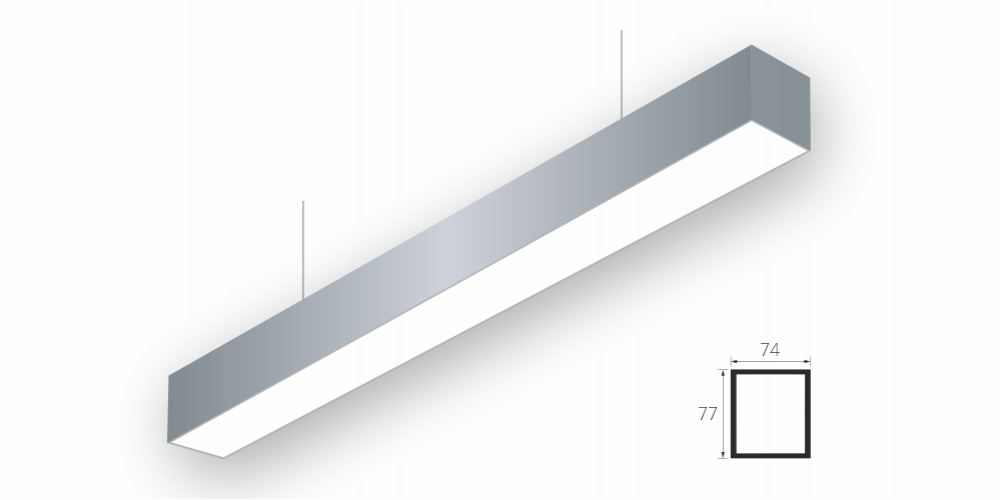 Линейный модульный светодиодный Подвесной светильник LiNE-Pro 77x74 1250mm 50W 3000K Серый предназначен для подвесного монтажа на тросовые подвесы. Изготовлен из алюминиевого профиля длиной 1250 мм, мощностью 50 Вт c цветовой температурой 3000 K, цвет корпуса Серый. Светильники соединяются в сплошную линию с помощью комплекта линейного соединения и сплошной магистральной проводки. Светильник имеет равномерную засветку по всей площади рассеивателя. Источник питания находится внутри корпуса.